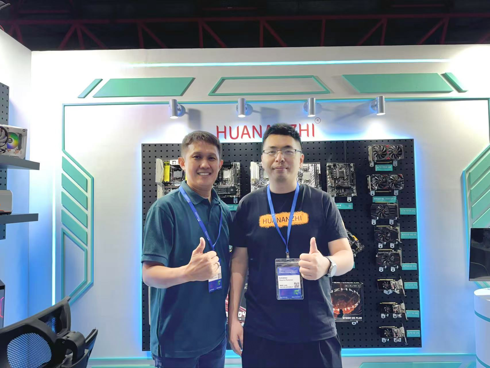 在产品展示区,华南金牌的主板、显卡、内存、SSD以及风扇等产品吸引了众多观众的目光。