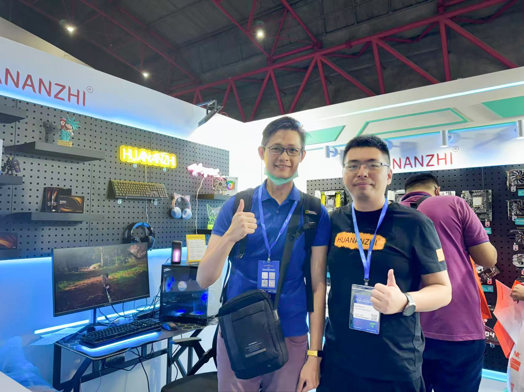 华南金牌(HUANANZHI)在A1馆C18-C20展台为玩家们准备了产品体验区、赛车/黑悟空游戏体验以及办公电脑体验等,许多观众来到了华南金牌展台参观体验。