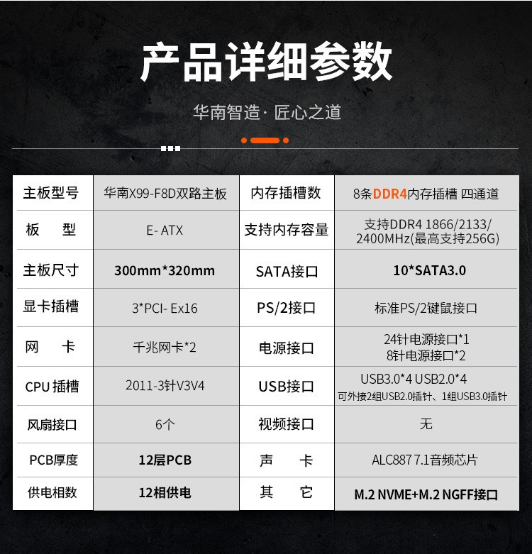· 华南X99-F8D双路主板(不带拨码器)