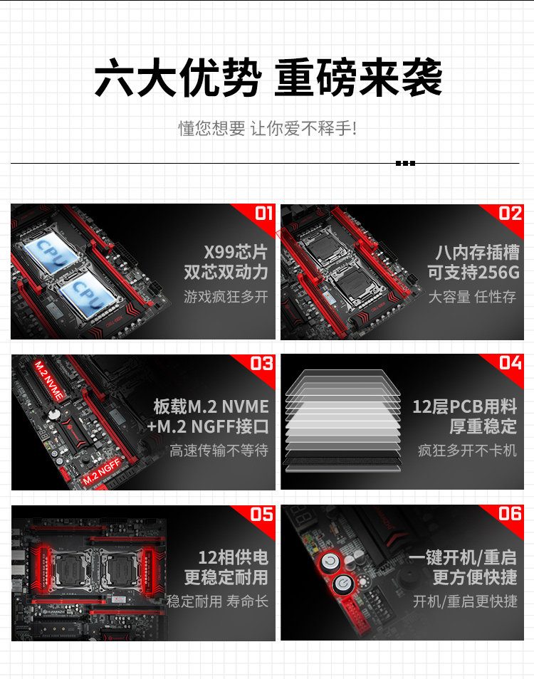 · 板载诊断卡、开机/重启按钮